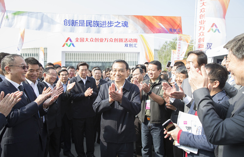 2015年10月19日,李克強參加全國雙創周活動時說,大企業員工和草根創業者通過創新創業都可以成為更多財富的創造者和擁有者。這既是收入分配結構調整的重要內容,也促進了社會公平正義。“雙創”為所有人提供了公平競爭的機會,讓有能力的人通過自身奮斗獲得上升通道。(資料圖)